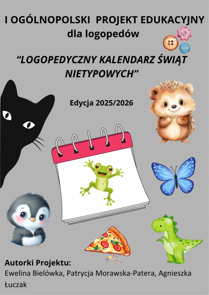 "Logopedyczny kalendarz świąt nietypowych" to ogólnopolski projekt logopedyczny podczas, którego realizowane są różne. W naszym przedszkolu zrealizowane były :